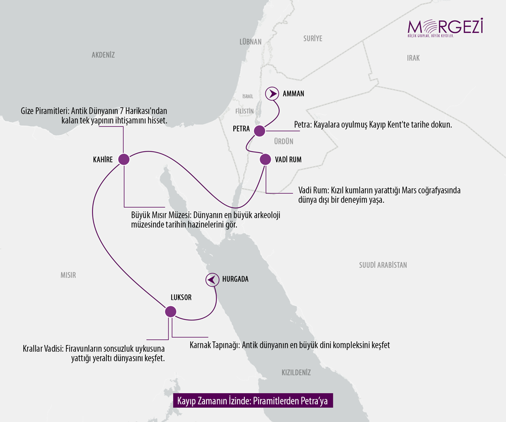 Bu coğrafyada tarih kitaplardan okunmaz, bizzat yaşanır. Bir yanda insanoğlunun ölümsüzlüğe meydan okuyarak inşa ettiği piramitlerin gölgesi, diğer yanda doğanın ve Nebatilerin kızıla boyadığı taşın sessizliği...Bu sıra dışı yolculukta, medeniyetin iki devini tüm gerçekliğiyle tanıyacağız. Yolculuğumuz Nil’in kıyısında; devasa sütunlarıyla göğe yükselen Karnak Tapınağı’nda ve firavunların ebedi uykularına yattığı Krallar Vadisi’nin derinliklerinde başlıyor. Burada Antik Mısır’ın o gizemli ve köklü tarihini yerinde keşfedeceğiz.